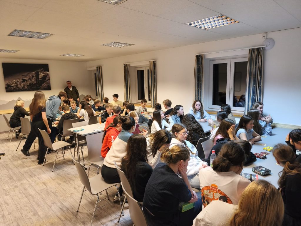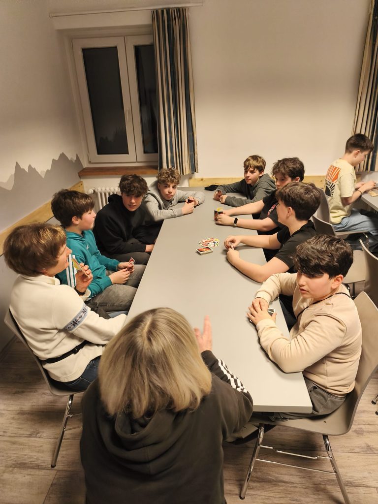 Endlich wieder trocken! Wir nutzten den letzten vollen Tag für „Skifahren ohne Ende“. Am Abend mutierte die Jugendherberge zur Theaterbühne. Jedes Zimmer musste ein Stück zu den Reizwörtern Tinte, Torte und Tante präsentieren – die schauspielerischen Leistungen waren… sagen wir mal: oscarreif 😉 Und weil das Brettspielen so gut ankam, ließen wir die Woche auch damit ausklingen.